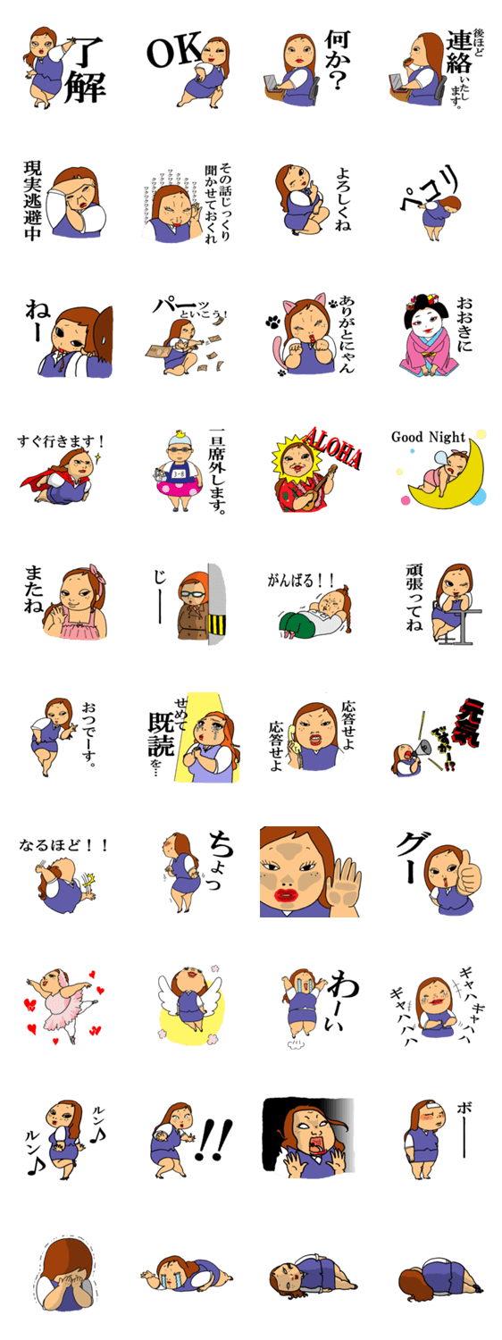 うざくて明るい独身OLの、ちょっとかわいいスタンプです。