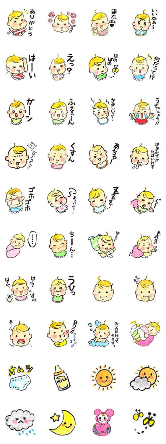 | スタンプ説明 | 赤ちゃんのいるママが、パパやママ友、おばあちゃんとの会話で使える癒し系スタンプです。忙しく手が離せない時でもこのスタンプで状況を報告でき時間の短縮になりますよ。 |