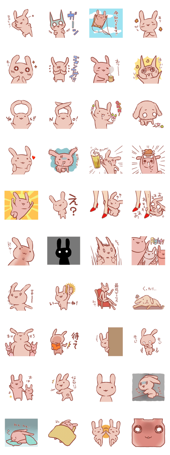 シュールで気の抜けたうさぎの、日常スタンプ。