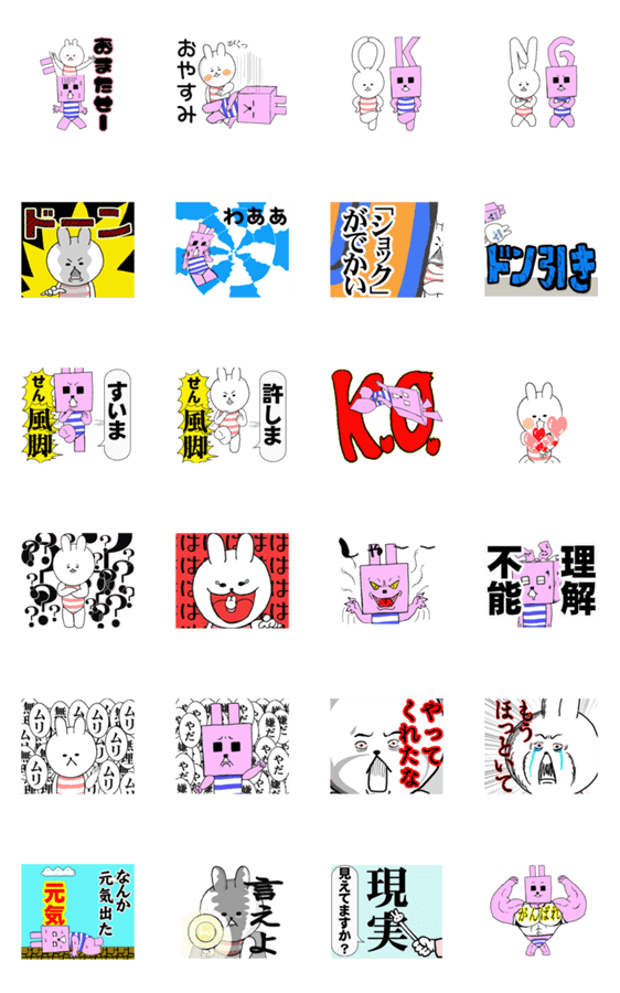 イラっとするから仲の良い友達に使わないと危険なスタンプ。 「まるうさぎ」と「かくうさぎ」が面白く、ウザく、可愛いやつです。