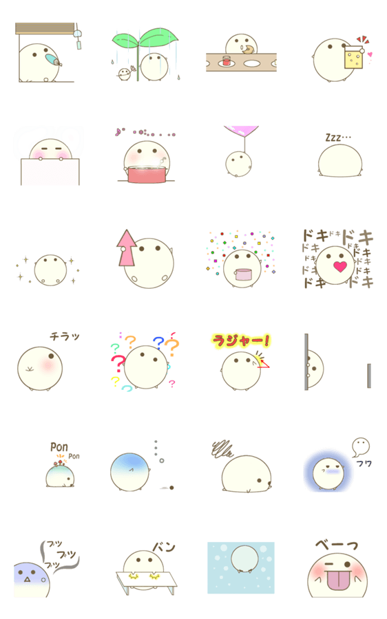 | スタンプ説明 | 丸くて、ふんわりしたキャラクターのスタンプです。白ぽよのゆるい動きをお楽しみ下さい。 |