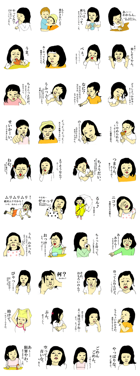 親バカすぎて作りました、リアルな娘スタンプ! 子供の心の声を母である私が代弁してみました。パパママ達へ。 使いやすい日常会話からシュールなものまで。関西弁です。