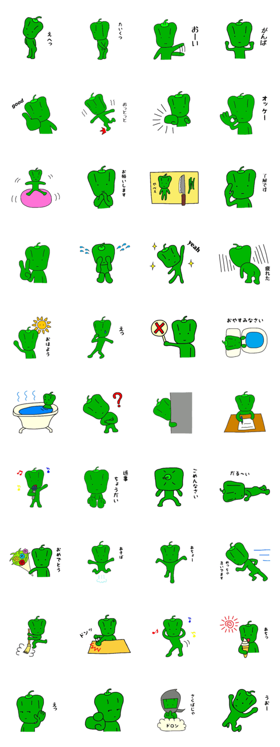 スタンプ説明 クールだけどかわいいピーマンのスタンプです