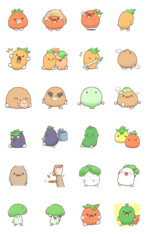 野菜がテーマのスタンプです。ちょっと間が抜けていたりほのぼのするような野菜たちをアニメーションで表現しました。ご家族やご友人と是非使ってみてください。