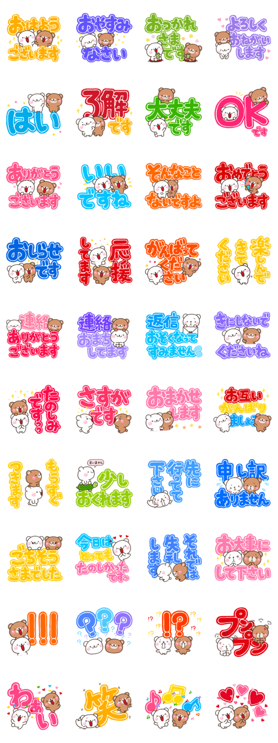 スタンプの文字が小さくて見えない!という声にお応えして大きな文字の使いやすい内容を集めたスタンプです。今回はくまさん敬語きほんverです。【作:いしいともこ】