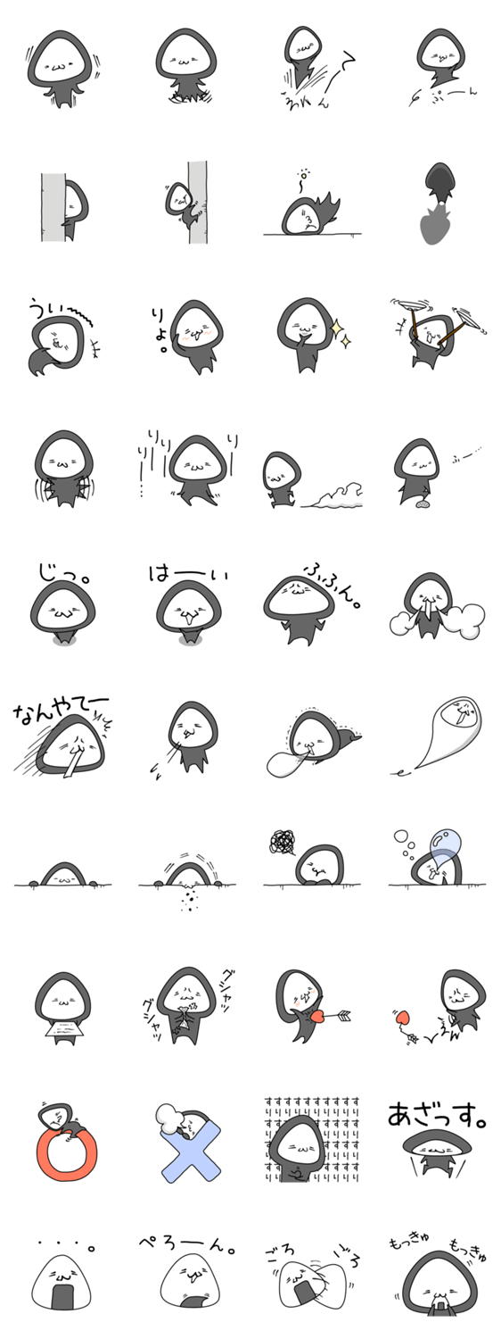 少しシャイなおにぎりの妖精『おにぐりん』のスタンプです。シャイな会話にご使用ください。