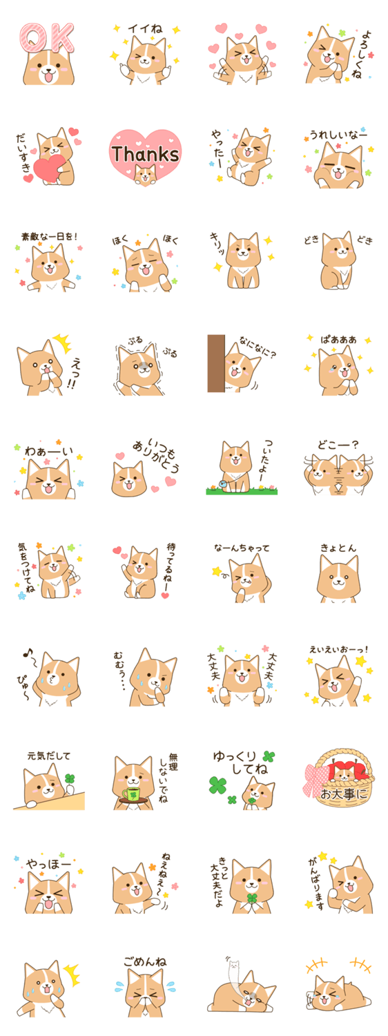 ちょっと女子力高めのコーギー犬スタンプ、第4弾です。職場・学校・家族・恋人にかわいく、気遣いや応援をしたいときに使ってください♪