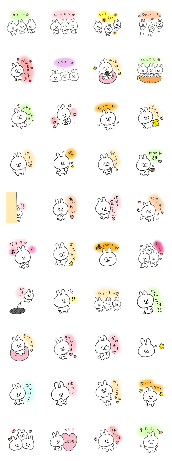 ほっこりかわいい三人組。ケアコロうさぎさんのスタンプです。