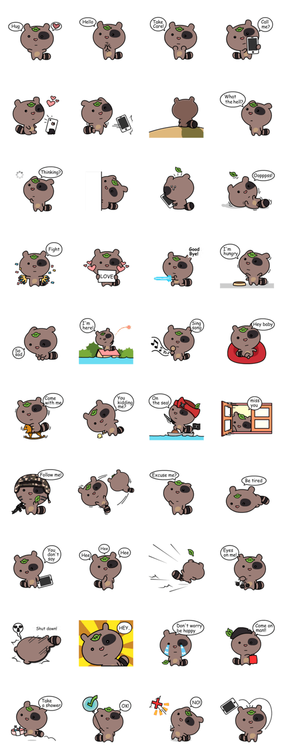 | スタンプ説明 | Hello guy. i'm a raccoon my name is "salle" ,ain't no thing like, expect me. assertive raccoon sticker. |