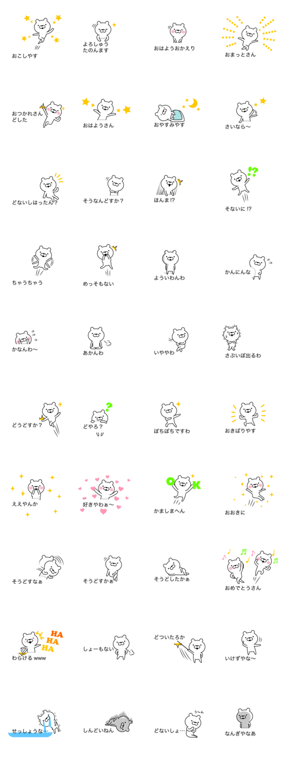 方言吹き出しスタンプ。京ことば・京都弁を話すくまです。関西弁・大阪弁としても使えるスタンプ入り。