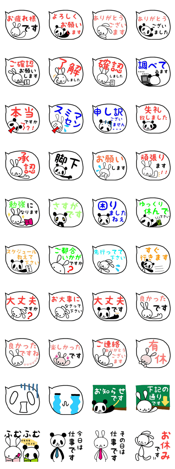 うさぎとかぱんだとかシリーズの敬語ver。 仕事仲間に使える言葉です。