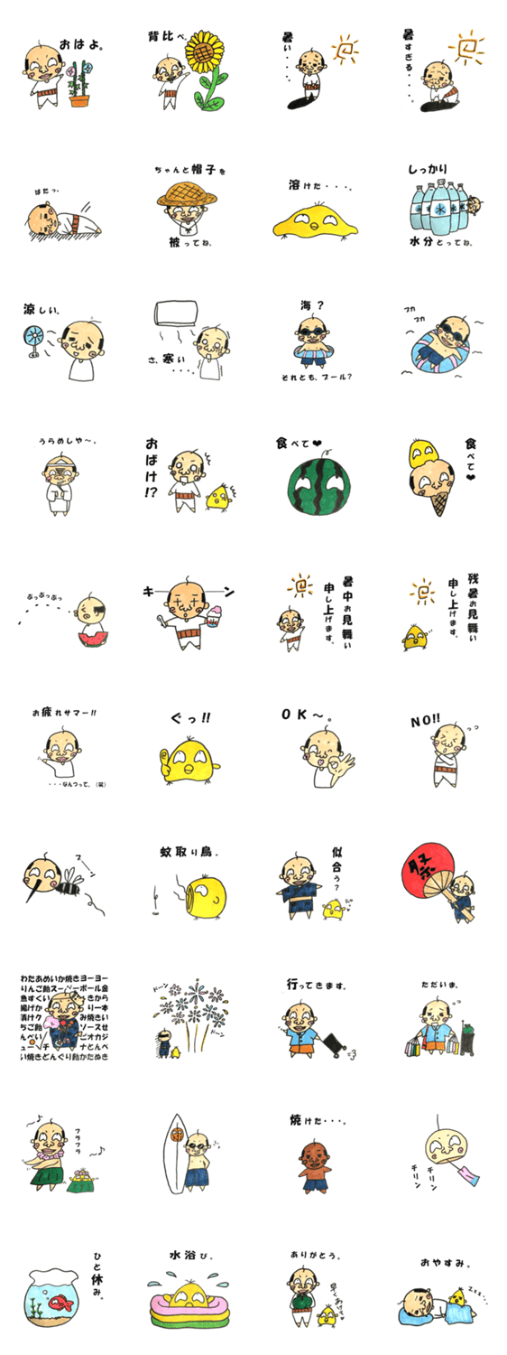おじさんと鳥さん。夏。 -LINEスタンプマニア