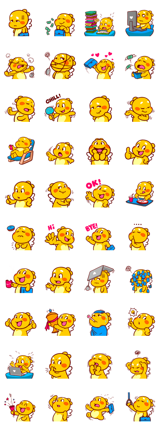 QooBee is an overweight cupid who loves donuts & spreading love. This is a brand new series of "Office" themed stickers of QooBee.