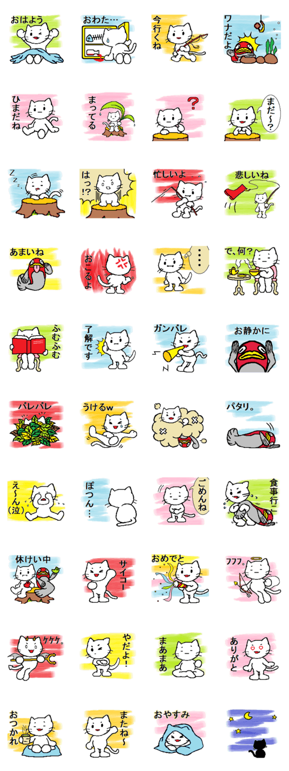 釣って食べて眠る白い猫。 自由な生活のスタンプです。