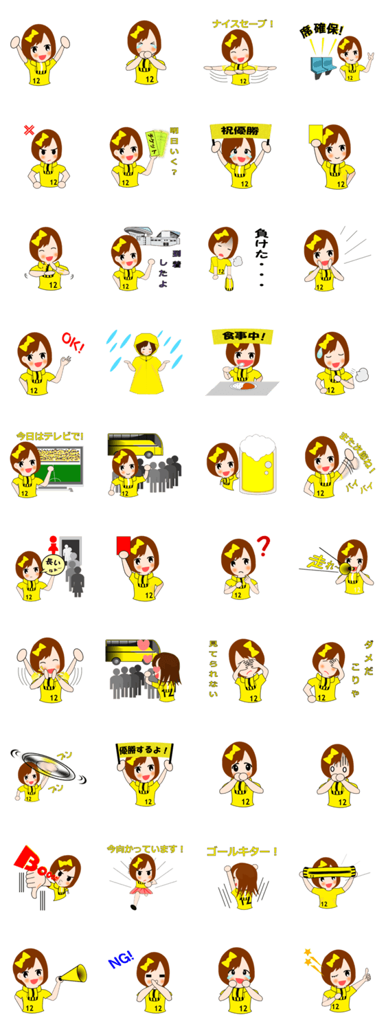 サッカー観戦仲間と楽しく使えるサポーター専用スタンプ。チームカラーは黄色・イエローです。