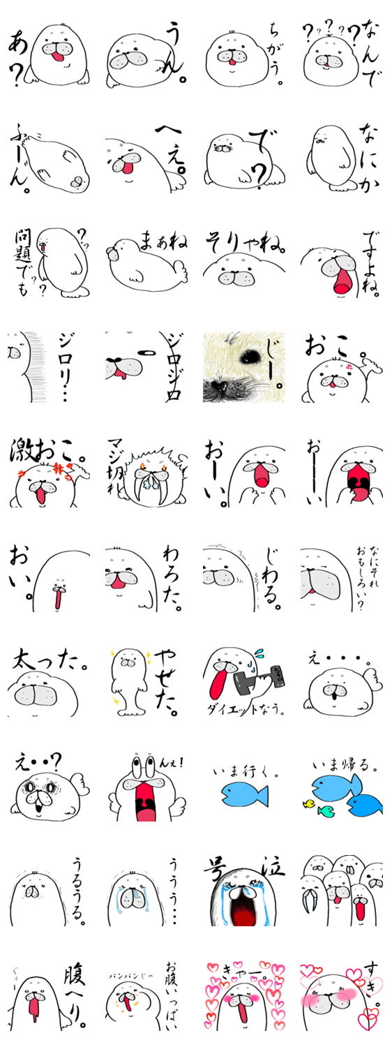 白ネコのあいうえお・・・ってるスタンプ