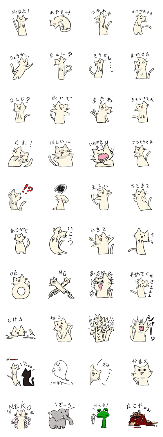 白ネコのあいうえお・・・ってるスタンプ