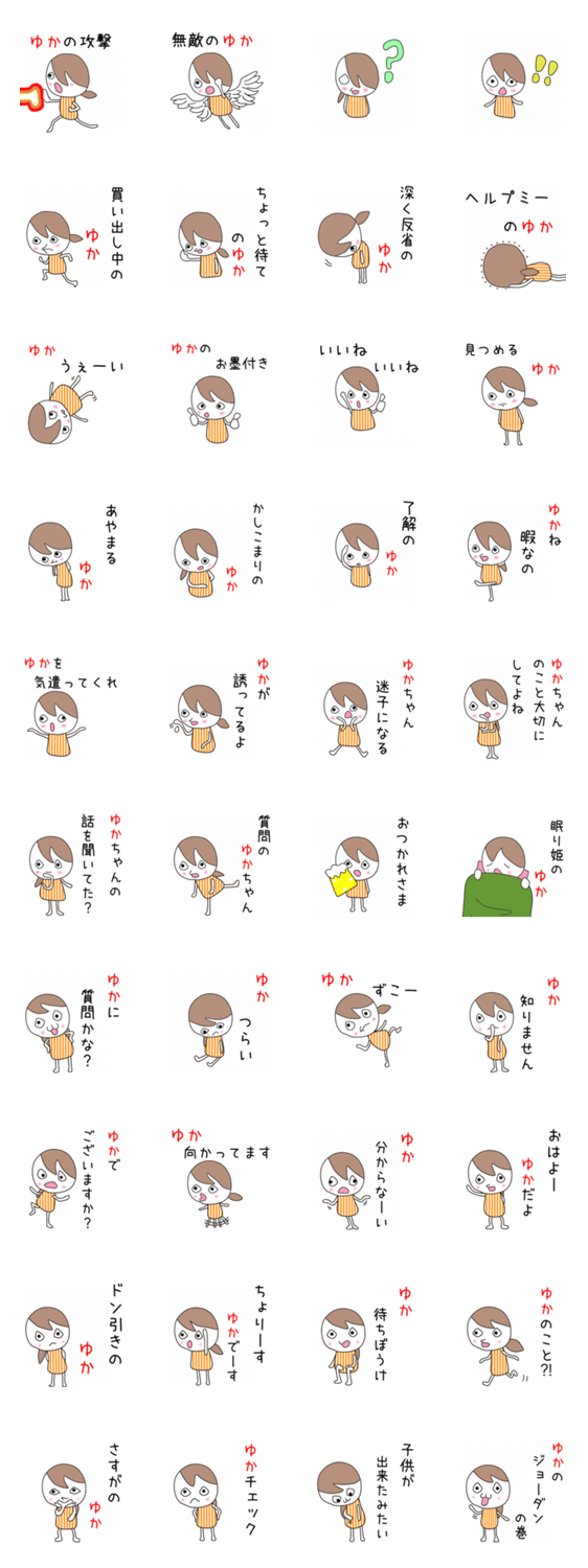 ユカ、由佳、由香、由加、有華、有香、裕香、友香、結花、夕夏、ゆかり、由佳子、ゆかちゃんの為のスタンプ