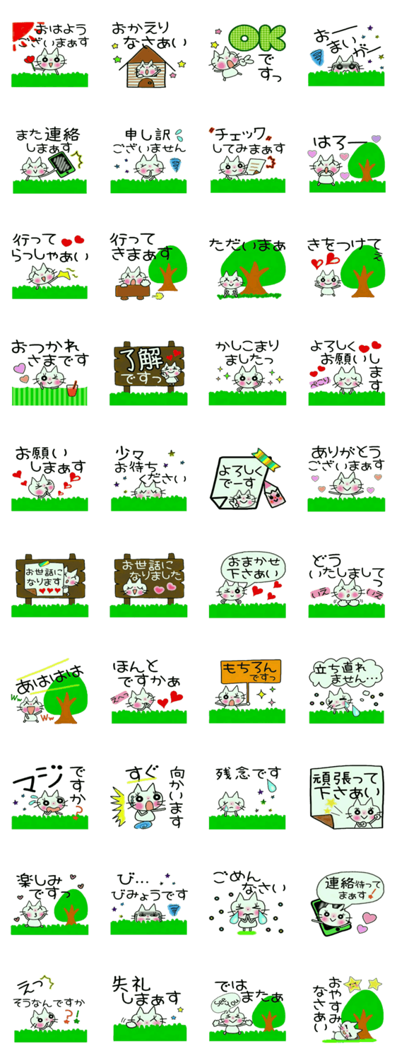 ゆる敬語のスタンプです。可愛いねこのシンプルで便利なスタンプです。
