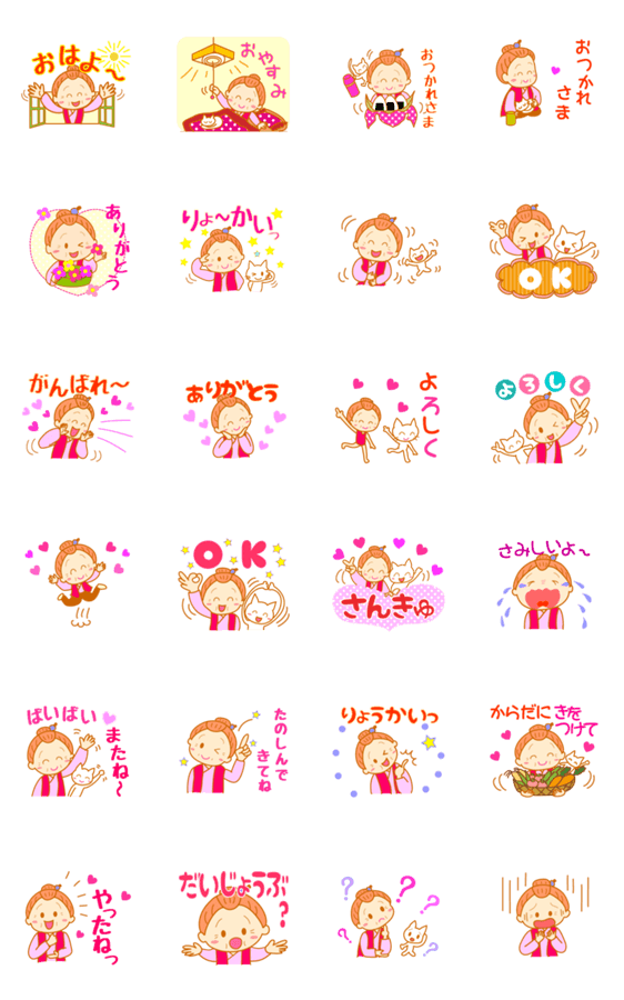 かわいいおばあちゃんの動くスタンプです。かわいいねこと、いつも一緒です。