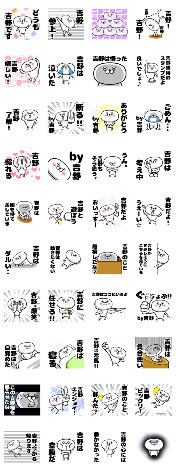 『私専用』シリーズ第48弾!!全国の吉野(よしの)さんにオススメのスタンプです。吉野さんへのプレゼントや、家族間でのやり取りにも使えます。芳野、好野さんもどうぞ♪