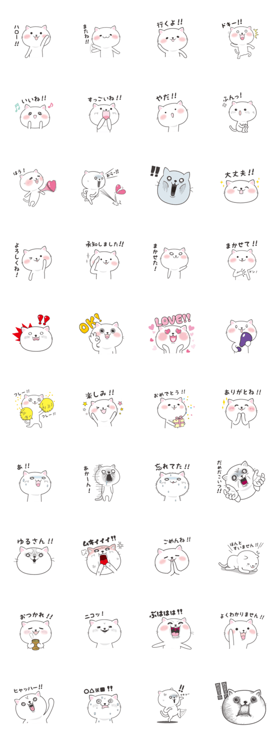 白ネコのあいうえお・・・ってるスタンプ