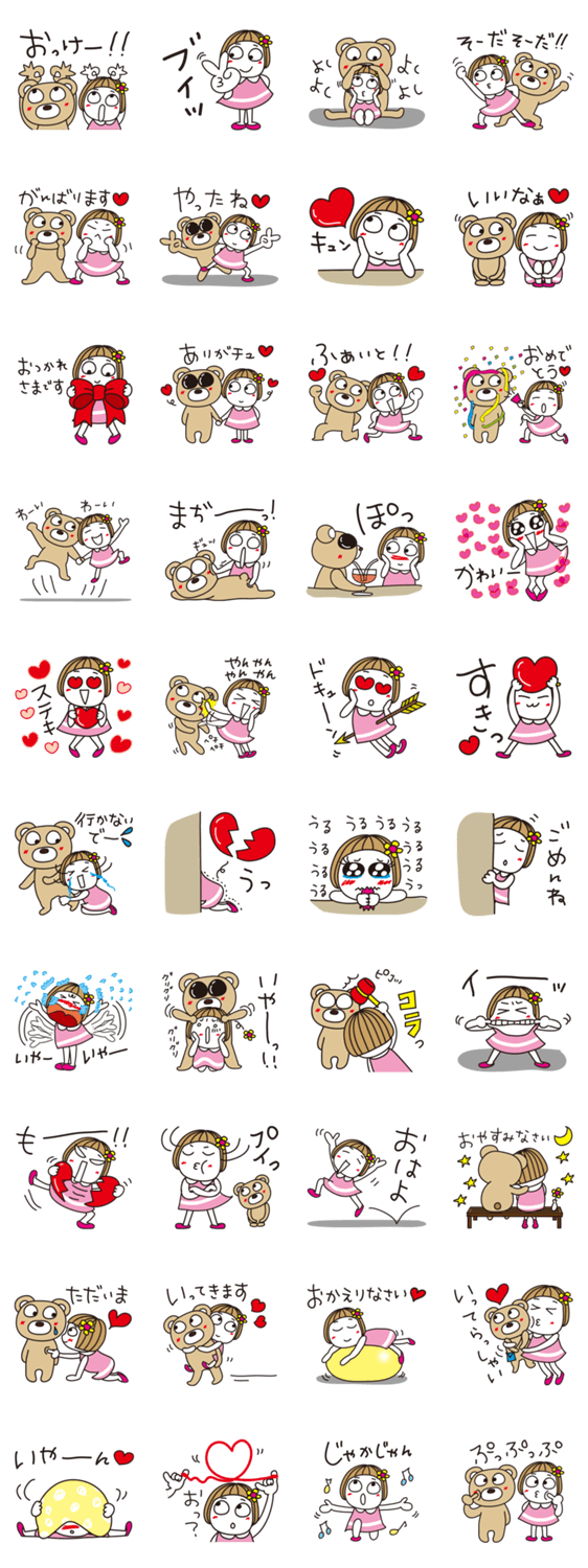 前髪ぱっつんのはな子ちゃん。ハートいっぱいのラブモード。日常敬語も入ってます。時々、くまチャンがサングラスかけちゃいます。シマ子・トメ子のお友達。