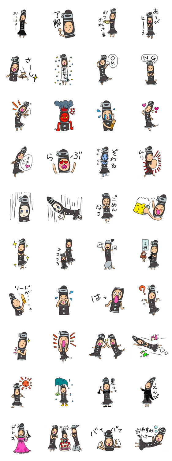 どうもクラリネットさんです。スタンプになりました。かぶりものではありません、中の人などいないのです。そう、私はクラリネットさんなんです。