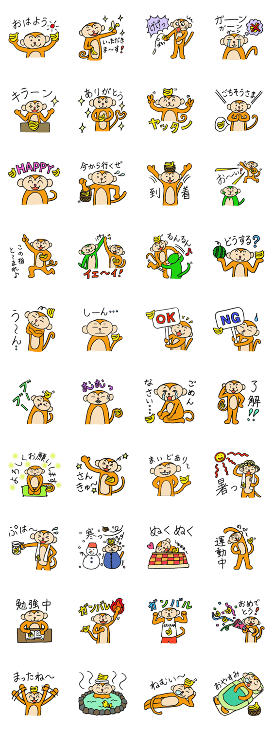 おさるはいつもバナナと一緒☆ -LINEスタンプマニア
