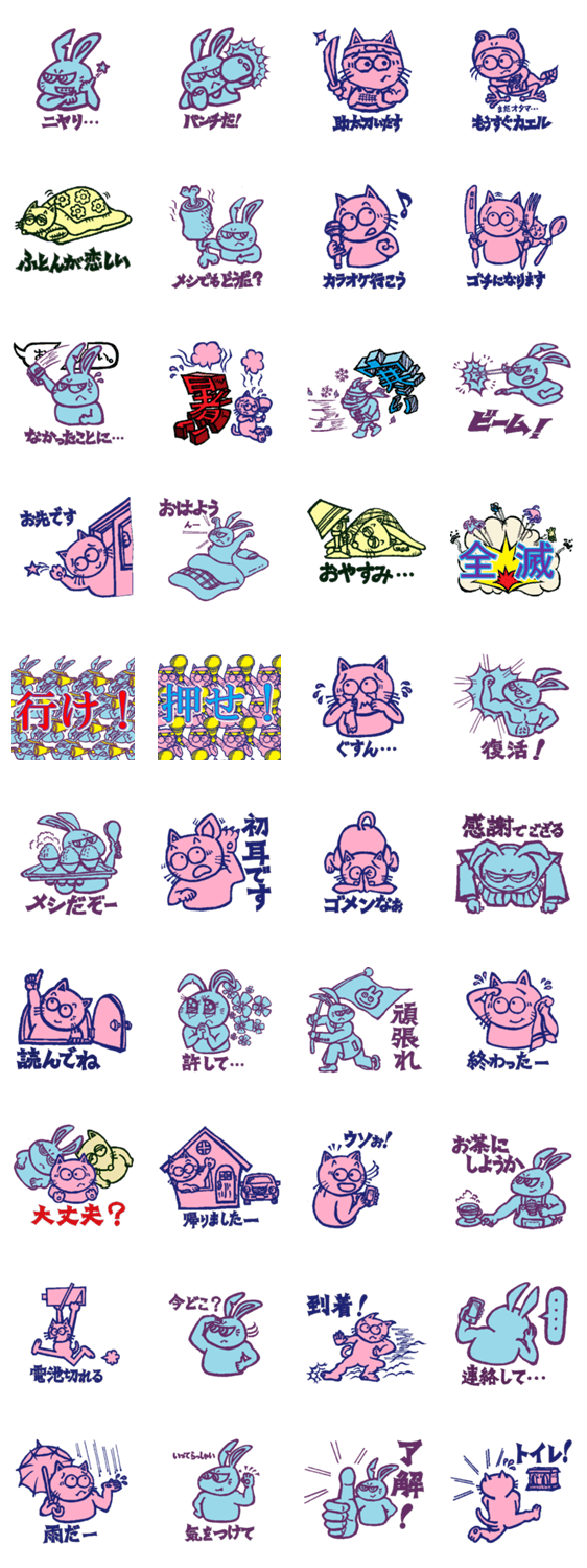 青いウサギと赤いネコ、たまには黄色いイヌ -LINEスタンプマニア