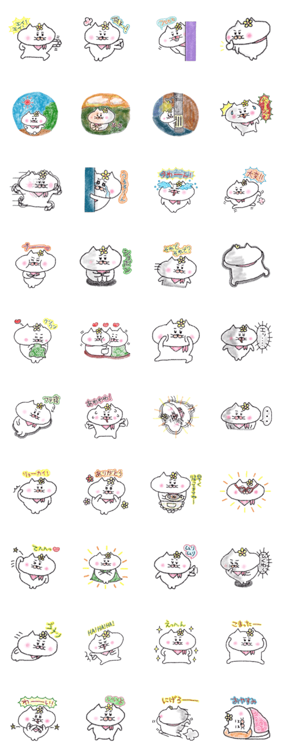 ふろしきニャンコ松吉の恋人、花ちゃんの泣き笑いせつなスタンプにクレヨンバージョン登場!