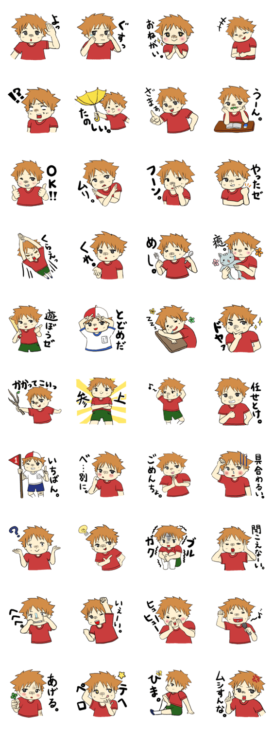 小生意気だけどちょっと可愛い、可愛いけどちょっと憎たらしい、でも憎めない小学4年生トモくんのスタンプです。子供時代の事や、子供の事を思いながら使って下さい。