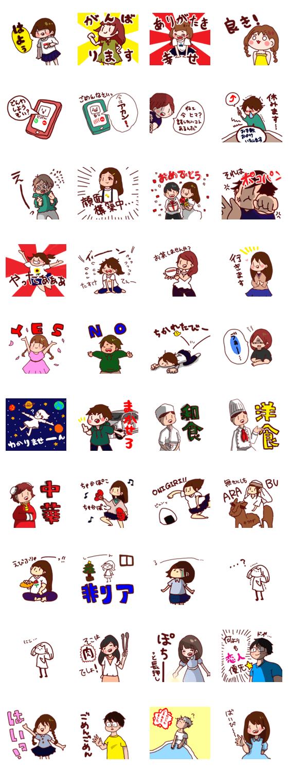 老若男女みんなで使えるちよちゃん(がメイン)のスタンプが出たよ ゆるっとした絵柄でトークを盛り上げよう!