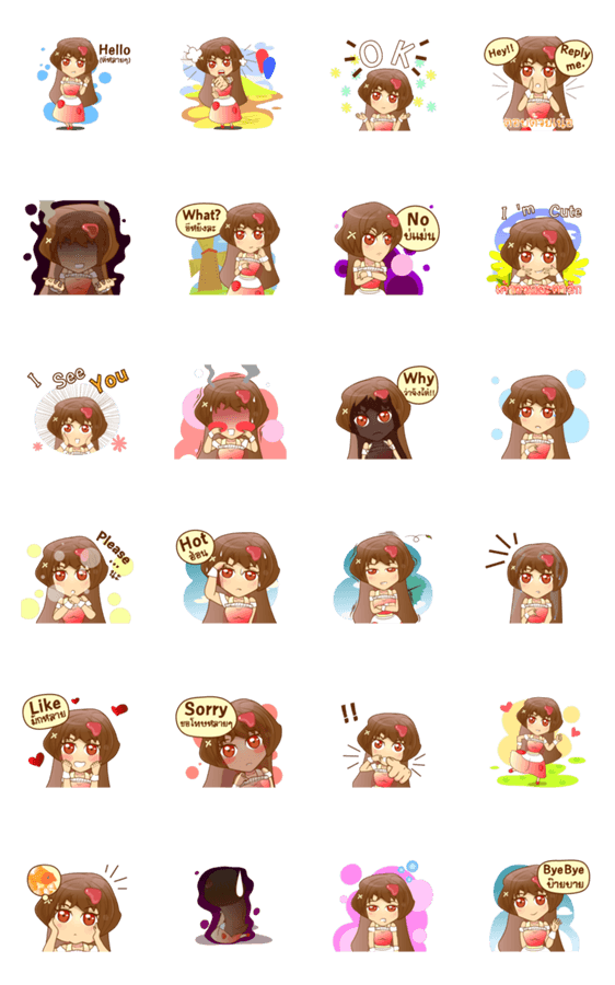 Cartoon lady to communication. It 's Sticker use all Country by animation cartoon. have 24 animation. Have Thai and English language.