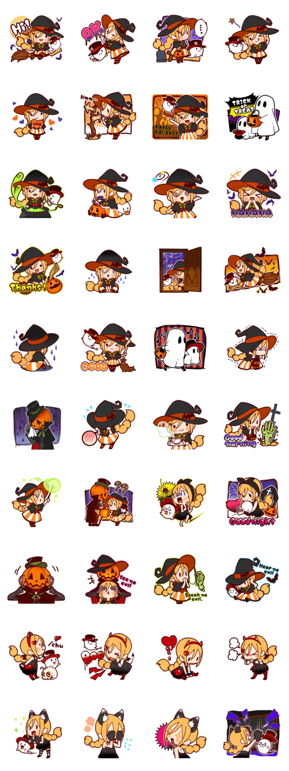 カボチャやコウモリなど、ハロウィンモチーフ満載!かわいい魔女っ子が、お化けやジャック・オ・ランタンと一緒にトークを盛り上げます!女の子の小悪魔や黒猫姿にも注目♪