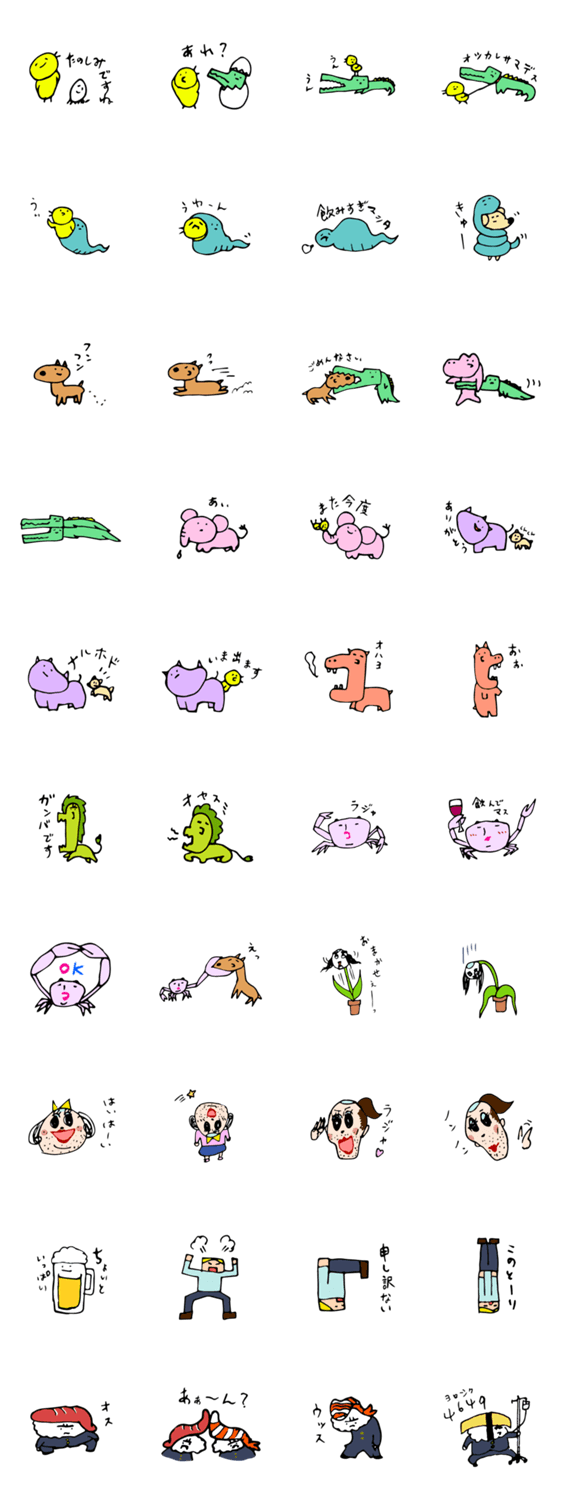 だいたいのことはオッケーなノリで使えるスタンプの第2弾。 どうぶつ多めです。