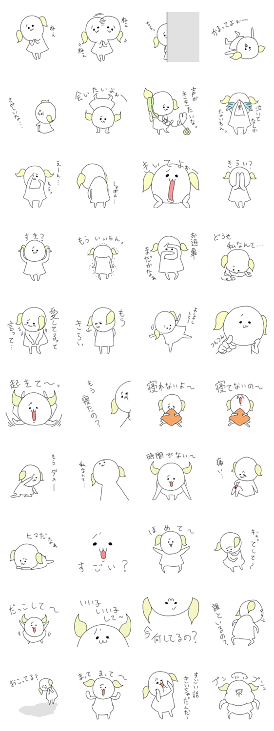 | スタンプ説明 | かまってかまってー!甘えん坊さんにも、素直になれない人にも♡ |