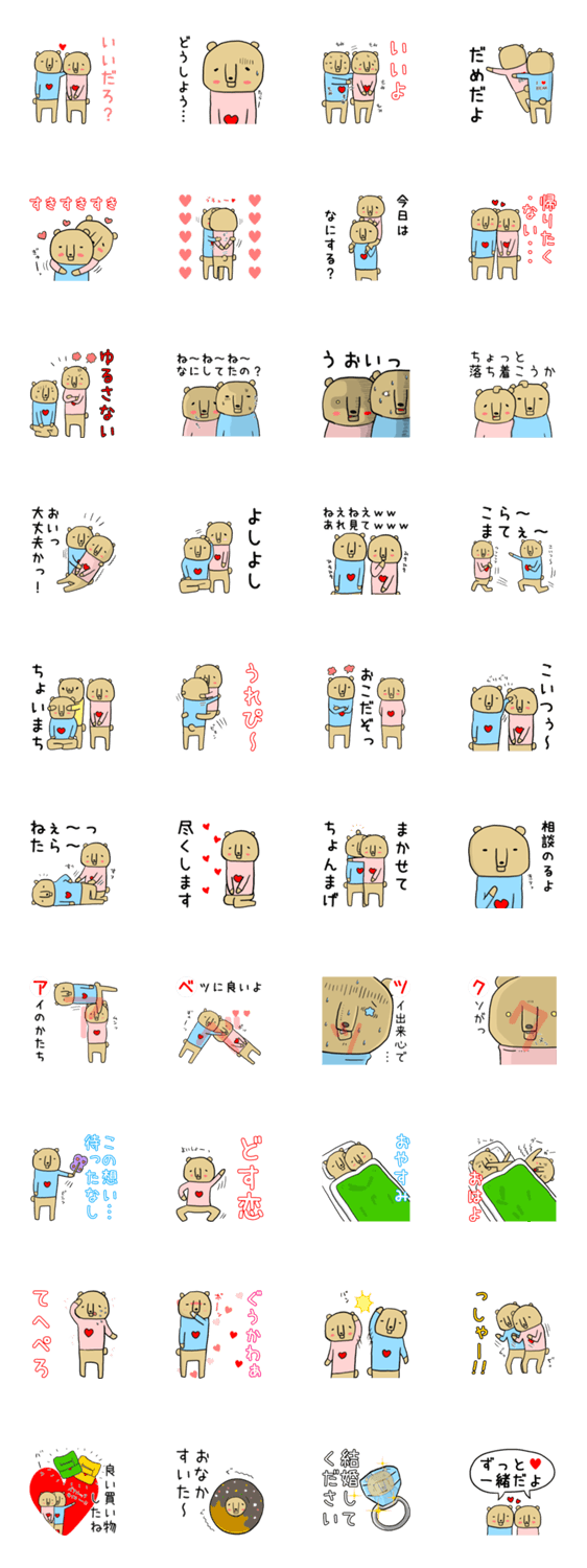 アベックのクマ、アベックマのスタンプです。彼氏彼女はもちろんの事、夫婦・コンビ・気になるあの人などとペアで使うとバッチグーですよ。