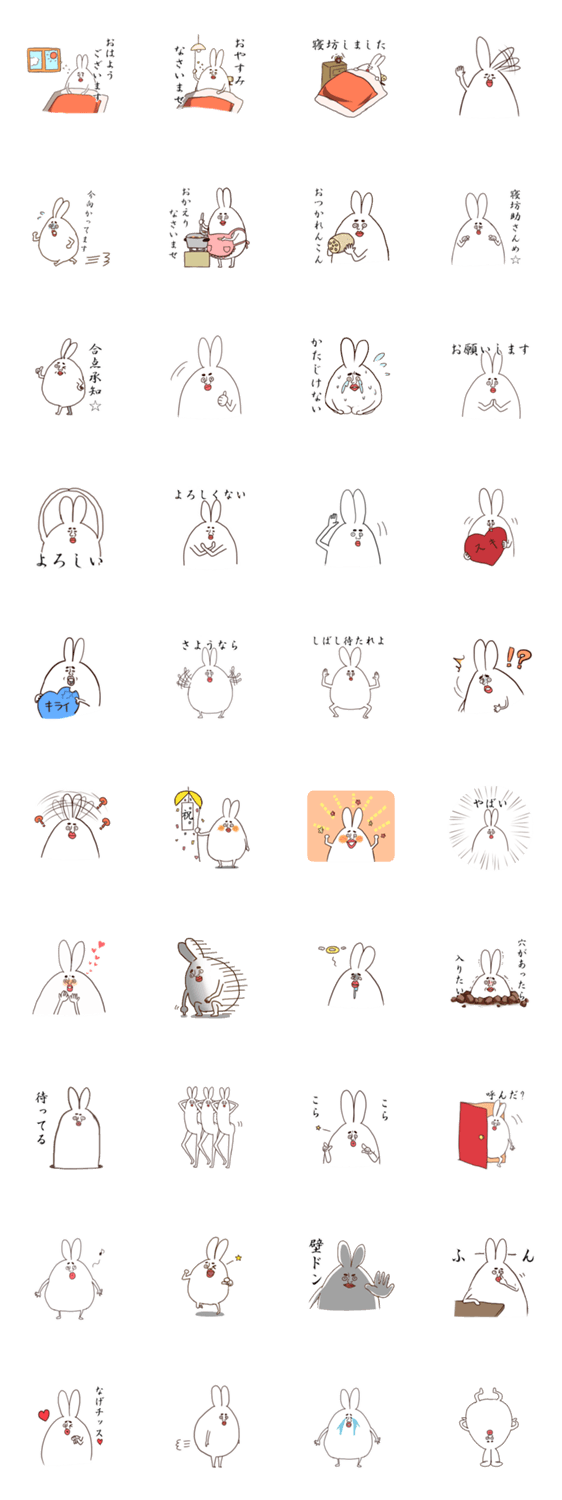 きもかわいいうさぎ(?)が日常会話を年齢性別問わずお手伝いする。そんな誰にでも使いやすいスタンプです。