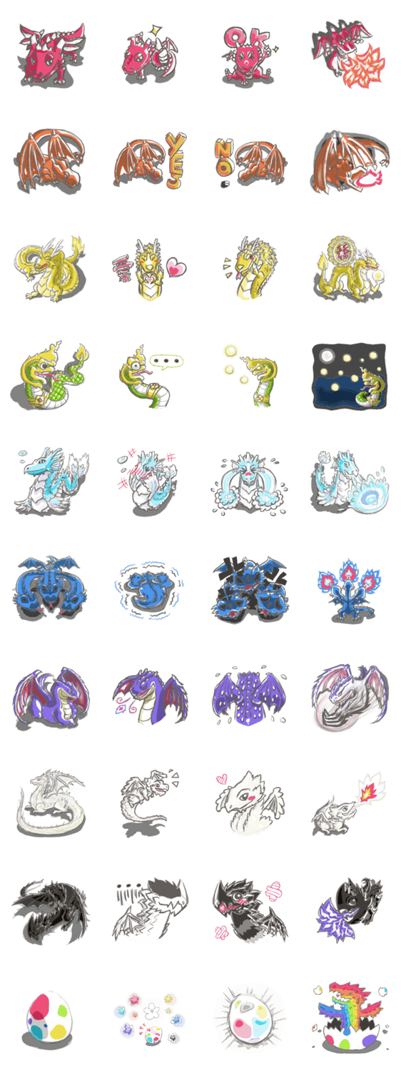 | スタンプ説明 | The legends were told for centuries that there were Dracos. And finally Dracos the Dragons are now to fulfill your wishes on your conversations! |
