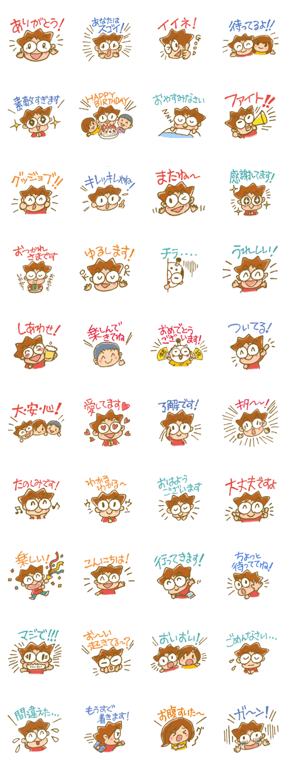 オリジナルキャラクターぴかり&つやこ&てるこの しあわせファミリースタンプ。 シンプルで使いやすく、ポジティブな言葉がいっぱい!