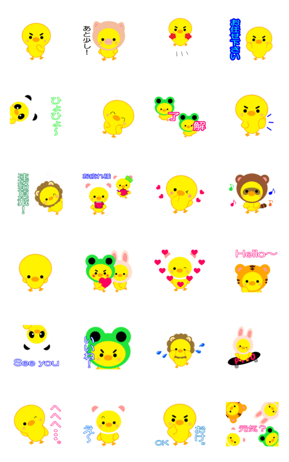 ひよこのぴよちゃんアニメーションスタンプpart 3。 きりっとした眉毛のぴよちゃんも登場しました。