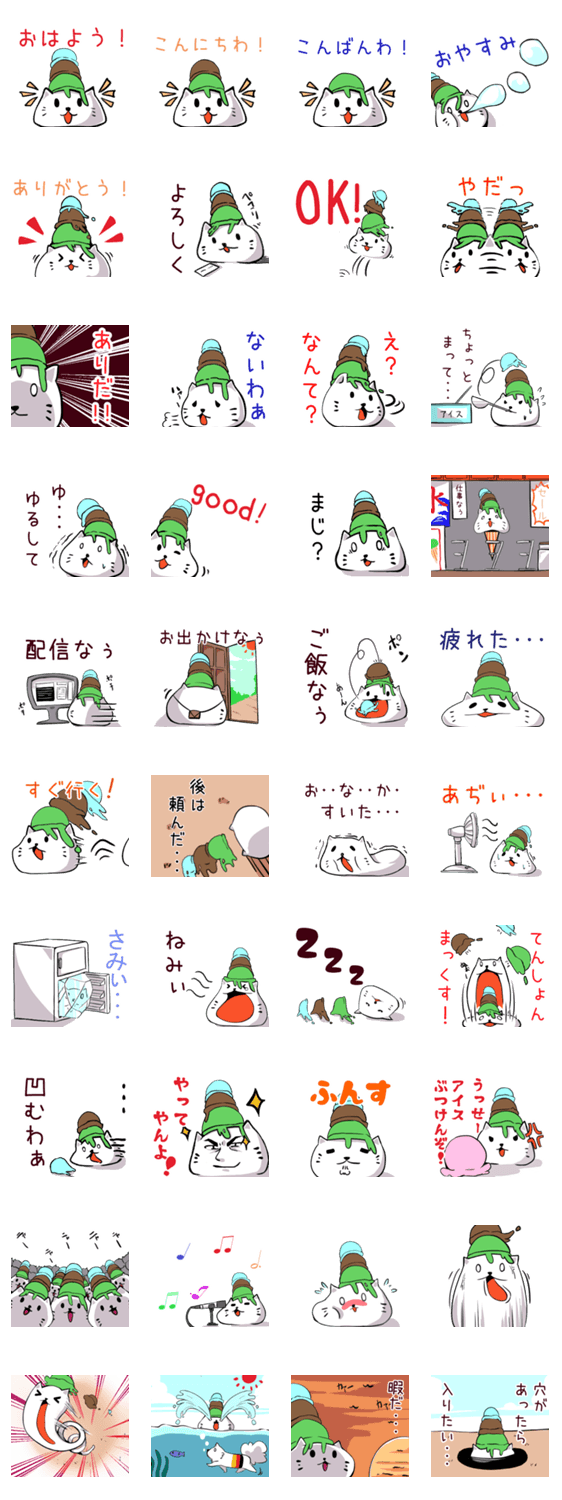 まるっこい猫ちゃんにアイスがのっかってるゆるふわキャラです。