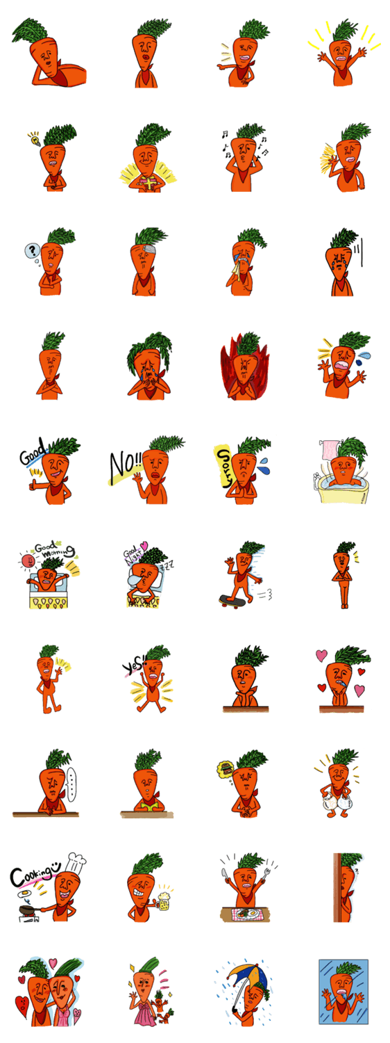 にんじんのジョン!シーズン1にんじん界のプリンス シュールで可愛くシンプルに!ジョンの生い立ちも想像してみて。 見れば見るほど癖になる野菜スタンプ。