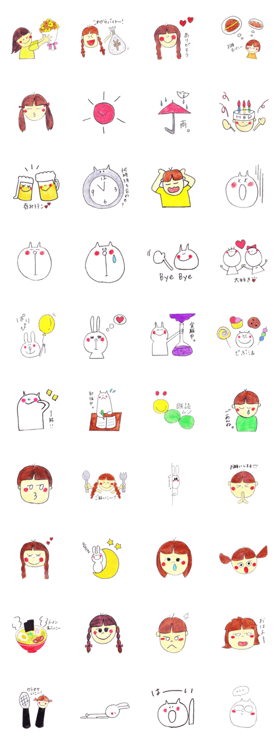日常生活を思うがままに表現。 思わず元気が出ちゃうスタンプ!色鉛筆で可愛く仕上げました!