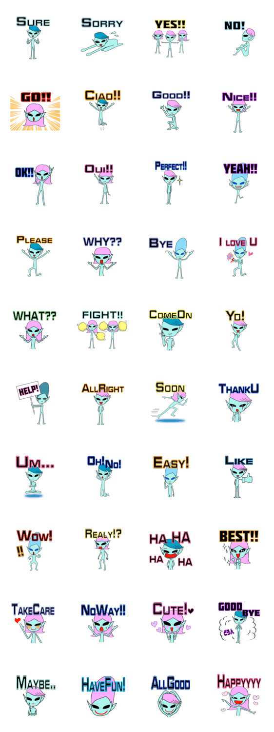 愛と美を追求する宇宙人。日常で使えるスタンプです。UFO/UMA/英語/English