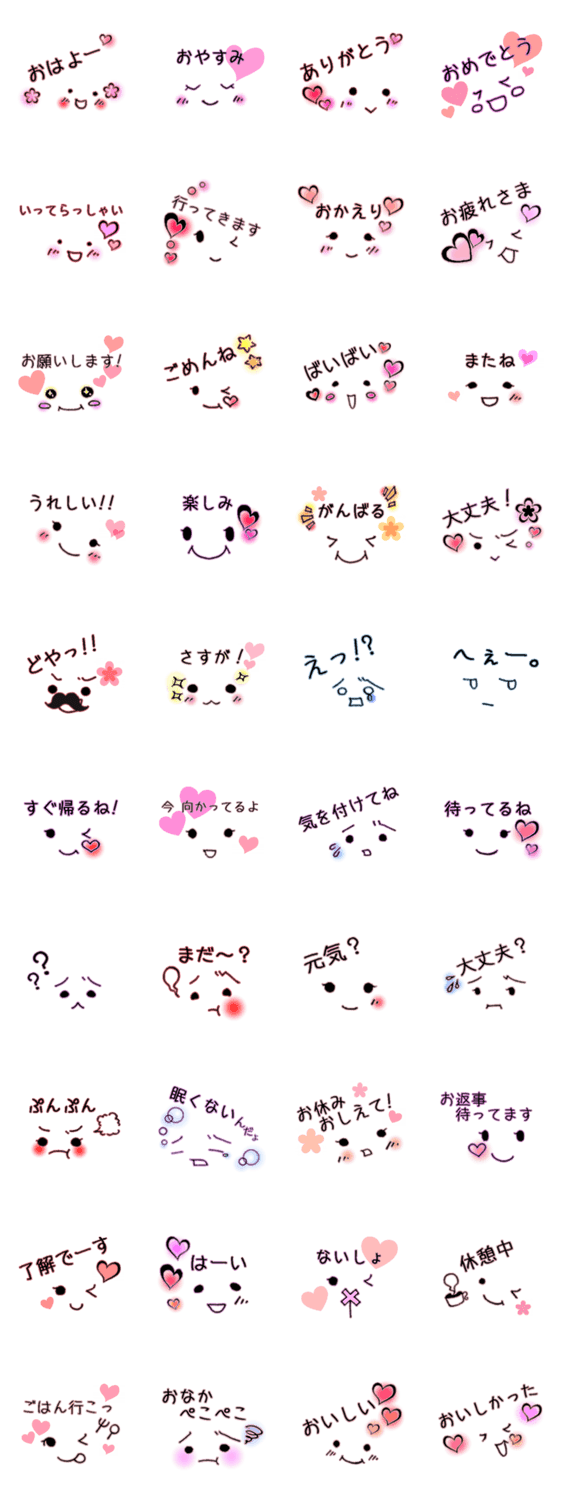 かわいい・シンプルな顔文字です。 よく使うメッセージ付きです。 可愛いバージョンです。