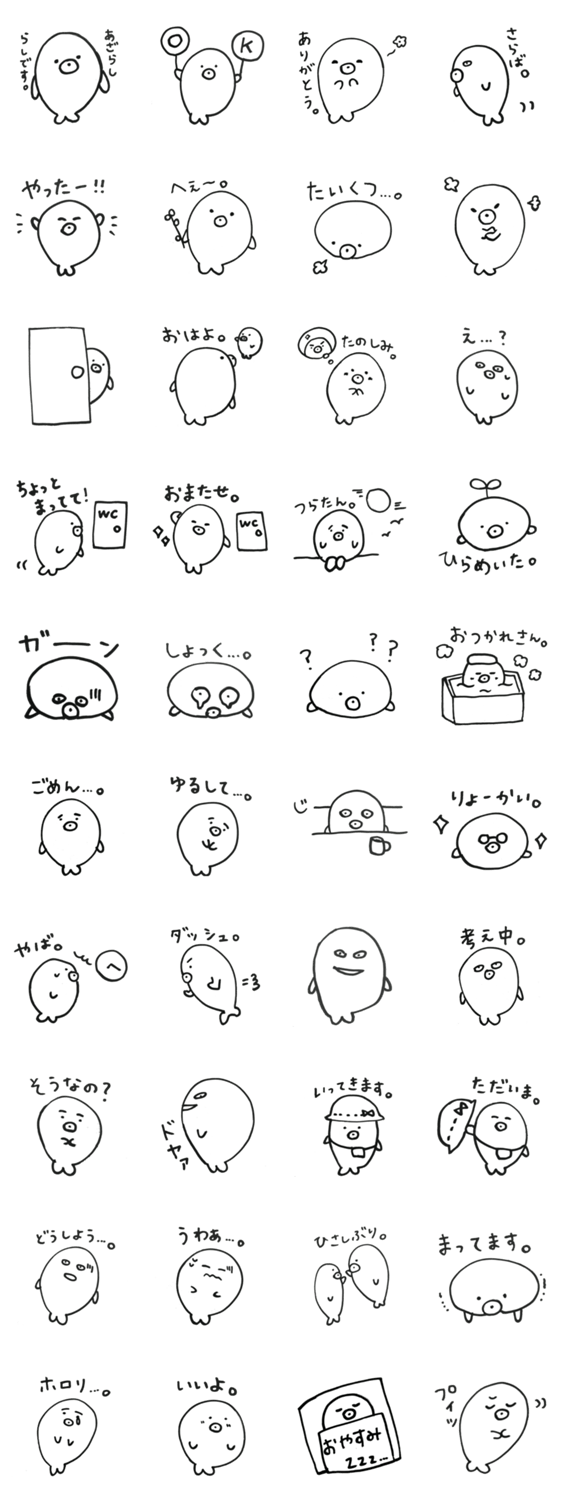 あざらしの、らしちゃんのスタンプです。ちょっとおっちょこちょいだけど、にくめない、そんならしちゃんです。