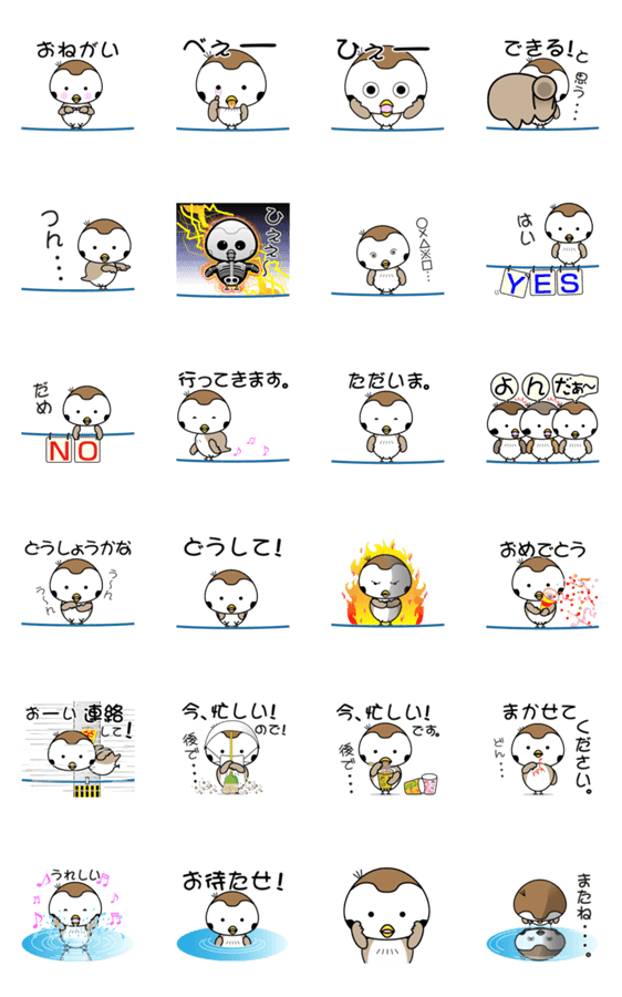動く、すずめの「ぼっちのちゅんちゅん。」 の第2弾です。 日常の会話でお使いください。