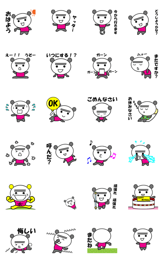 オデコにしわがある、じっちゃんパンダの動画スタンプです。 面白さを表現したものもあるので楽しく使って下さい。